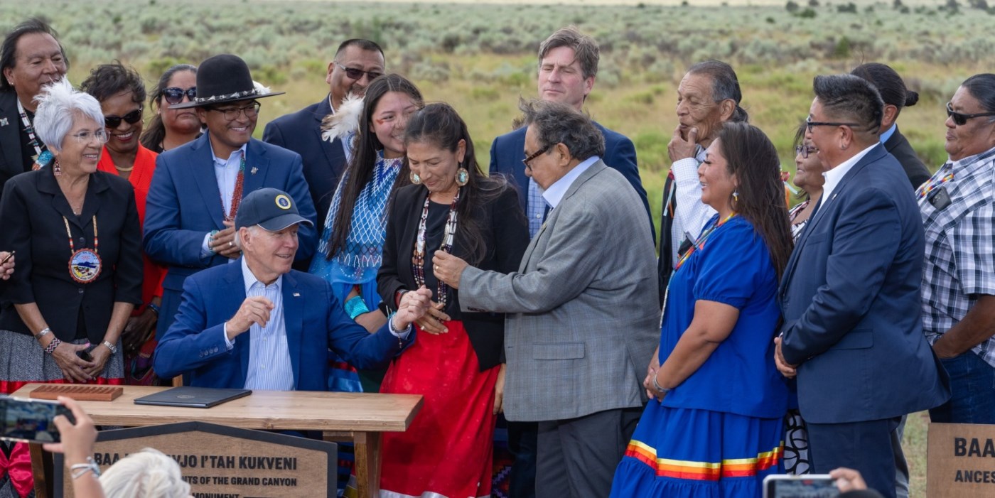 El representante Grijalva se unió al presidente Biden, a la secretaria Haaland, a líderes indígenas y a otros funcionarios de Arizona para la designación del Baaj Nwaavjo I’tah Kukveni, Huellas Ancestrales del Monumento Nacional del Gran Cañón, en 2023.